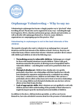 Este documento provee una explicación detallada de las razones que Better Volunteering Better Care está desalentando el voluntariado internacional en orfanatos (centros de atención residencial).