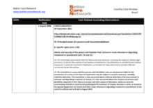 This country care review includes the care-related Concluding Observations adopted by the Committee on the Rights of Persons with Disabilities and by the Committee on the Rights of the Child. The Committees' recommendations on the issues relevant to children's care are highlighted, as well as other care-related concluding observations and ratification dates.