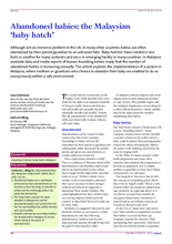 Although not an immense problem in the UK, in many other countries babies are often abandoned by their parent/guardian to an unknown fate. ‘Baby hatches’ have existed in one form or another for many centuries and are a re-emerging facility in many countries. In Malaysia available data and media reports of known foundling babies imply that the number of abandoned babies is increasing annually. This article explores the implementation of a system in Malaysia, where mothers or guardians who choose to abandon their baby are enabled to do so anonymously within a safe environment.