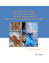 ISS, with support from UNICEF Viet Nam and MOLISA, undertook research on child abandonment and relinquishment in 2011 and 2012, as part of its follow up technical support to Viet Nam in overhauling its adoption system. Field assessments were carried out in five provinces and qualitative information was collected during interviews with 146 respondents with strong connections to issues of child abandonment and relinquishment. Information was collected in face-to-face, semi-structured interviews with 35 mothers/fathers or family members who had relinquished a child.