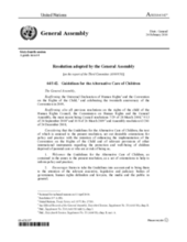 The Guidelines for the Alternative Care of Children were endorsed by the United Nations General Assembly on 20th November 2009, in connection with the 20th anniversary of the UN Convention on the Rights of the Child. This momentous day marked a culmination of years of discussions and negotiations led by the Government of Brazil, in partnership with Group of Friends and civil society. The Guidelines were designed to provide further guidance regarding the definition of the relationship between parental care and the child’s family environment, goals for alternative care, and the criteria for decisions of alternative care placements. The Guidelines target both policy and practice with specific regard to the protection and wellbeing of children deprived of parental care or who are at risk of being so.