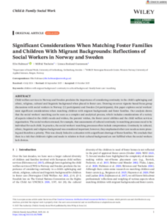 This study, based on vignette-based focus group discussions with social workers in Norway and Sweden, examines how they balance children’s cultural, ethnic, religious, and linguistic continuity with other needs when matching migrant-background children with foster families, revealing a complex process shaped by the child’s and parents’ wishes, foster carers’ capacities, and organizational constraints. While social workers value cultural continuity, they often prioritize more urgent care needs—especially amid a significant shortage of foster families—creating a risk that children’s rights and needs related to their cultural background may not be fully met.