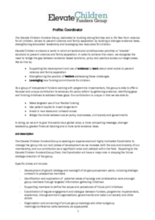 The Elevate Children Funders Group, dedicated to building strong families and a life free from violence for all children, strives to prevent violence and family separation by building a stronger evidence base, strengthening advocates’ leadership and leveraging new resources for children. The Elevate Children Funders Group is seeking an experienced and highly motivated Coordinator to manage the group into its next phase of development as it increases both the size and diversity of its membership, and its contribution as a significant voice and catalyst within the field. Reporting to the Elevate Children Funders Group Chair, the Coordinator will have a major role in shaping the future strategic direction of the group.