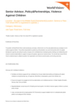 World Vision is seeking a Senior Advisor of Policy & Partnerships for Violence Against Children. The position will be located in Geneva or New York.
