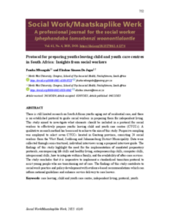 There is still limited research on South African youths aging out of residential care, and there is no established protocol to guide social workers in preparing them for independent living. This study aimed to investigate what elements should be included in a protocol for social workers to effectively prepare youths leaving child and youth care centres (CYCCs).