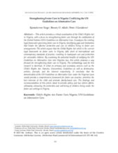 This article provides a critical examination of the Child's Rights Act in Nigeria, with a focus on strengthening foster care through the codification of the United Nations (UN) Guidelines on Alternative Care. It analyzes the existing legal framework governing foster care in Nigeria, identifying gaps and limitations that hinder the effective protection and care of children living in foster care arrangements.