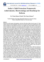 This paper critically examines India’s child protection framework, highlighting that despite comprehensive legislation like the JJ Act, POCSO, and programs such as Mission Vatsalya, systemic gaps in implementation, funding, institutional capacity, and data collection leave millions of children—particularly those in Child Care Institutions (CCIs)—vulnerable to abuse, neglect, and child marriage.