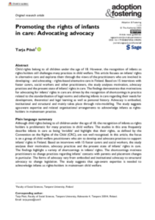 This article explores how infants’ rights in alternative care are understood and advocated for by practitioners in Finland, drawing on interviews with foster carers, social workers, and other professionals. The findings show that advocacy is driven by recognition of gaps in standardised practice and is enacted through embodied, institutional, and structural approaches, highlighting the need for age-aware expertise to fully recognise infants as rights holders in care.