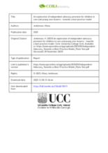 This report, from Ireland, provides a comprehensive exploration of the principles and practice of independent advocacy for children and young people with care experience, with a view to signposting what constitutes best practice in this field and proposing a model of advocacy practice which reflects the key themes arising. Resulting from a research project carried out with EPIC (Empowering People in Care), the report draws from the views of those who have experienced advocacy as children and young adults, those who have provided advocacy as professional independent advocates, management personnel responsible for the provision of those services in the context of EPIC and significant stakeholders in the field of advocacy service provision.