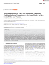 This paper examines how effectively out-of-home care systems in New South Wales and Victoria, Austalia support the participation of Aboriginal children and young people in decisions about their own care. It highlights systemic barriers and calls for structural reforms to embed Aboriginal child and youth voices at every level, rather than relying solely on individual practitioners to promote participation.