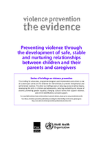 This briefing looks at the effectiveness of interventions that encourage safe, stable and nurturing relationships for preventing child maltreatment and aggressive behaviour in childhood. The focus is on primary prevention programmes, those that are implemented early enough to avoid the development of violent behaviour such as child maltreatment and childhood aggression.