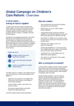 Through this new campaign governments, civil society, faith groups, and individuals with lived experience of care systems are calling on world leaders to join forces in a global movement that harnesses decades of international progress to ensure all children are growing up in a safe, nurturing and loving family environment. This overview calls on government leaders to join this movement.