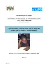Le présent document propose la procédure d’identification, de sélection, de formation, de suivi et d’appui aux familles d’accueil temporaire dans la prise en charge des enfants non accompagnés, séparés, enfants associés aux groupes armés, orphelins et autres enfants vulnérables en Centrafrique, aussi bien sur les sites des déplacés que dans les communautés.